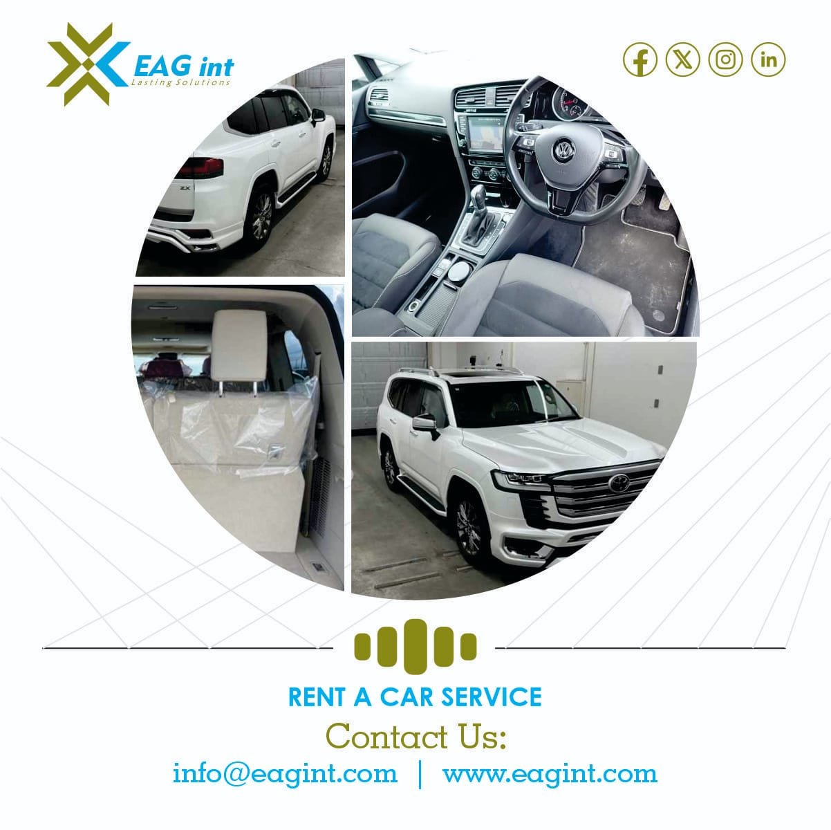 Sustainability Practices: EAGint incorporates eco-friendly practices into our rental services, using fuel-efficient vehicles and offering options that align with your sustainability goals.